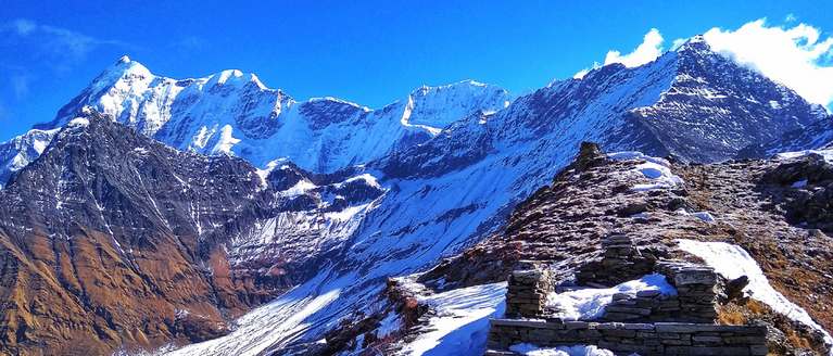 Roopkund is situated in Chamoli district of Garhwal. The road head for Roopkund is Lohajung 155 km from Almora, 217 km from Nainital and 235 km from Kathgodam. Roopkund situated at a height of 5029m in the lap of Trishuli massif. This area is usually called 'Mystery Lake', because of the human skeletons and remains of horses from the Paleolithic age were found here. The lake is surrounded by rock-strewn glacier and snow clad peaks. The starting point of Roopkund Trek is Lohajung as it passes through the lush green grassy land and conifer forest clinging into the sloped hills. Roop Kund Trekking Tour thereafter winds its way along the Pindar River. Bedni Bugyal and Bhagwawasa are the most beautiful places in this trek. You will also find a lot of "Bramha Kamal" near Bhawawara.